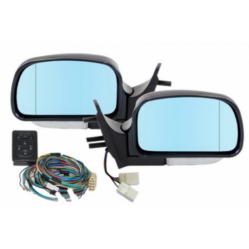 Комплект боковых зеркал для автомобиля ВАЗ 2108-15 ЛЭА-9 УГО с электрорегулировкой, указателем поворота, обогревом, с антибликовым покрытием, голубого тона, асферикой 2. Конструкция травмобезопасного корпуса предусматривает складывание зеркала при ударе.